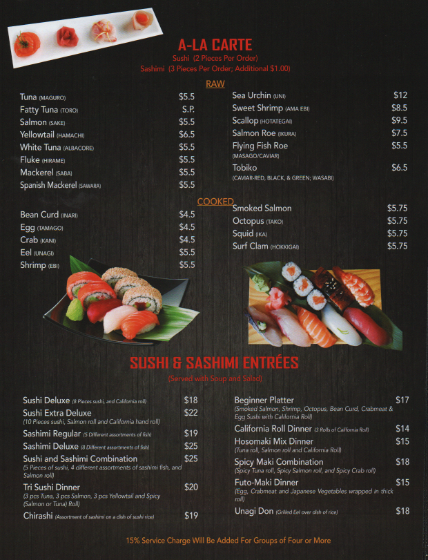 Menu Toyo Sushi Northgate 2865 Ygnacio Valley Rd